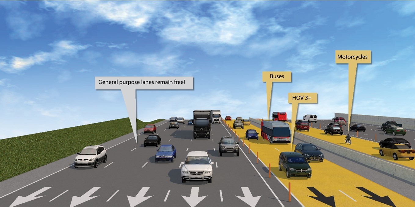 • By granting free passage to HOV 3+, buses and motorcycles, these new lanes will: give people a more reliable trip, provide more equitable opportunities with the option to travel free, reduce dependence on single-occupancy vehicles (SOV) and create new opportunities for ride sharing supporting regional, planning efforts to expand HOT/HOV usage.
