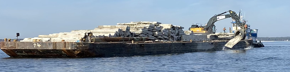 Concrete from the bridge will be loaded onto a barge and transported to an artificial reef site, which provides habitat and shelter for fish and invertebrates, creating sanctuaries for diverse marine life. In total, approximately 9,500 tons of old bridge materials will be used to enhance habitat.