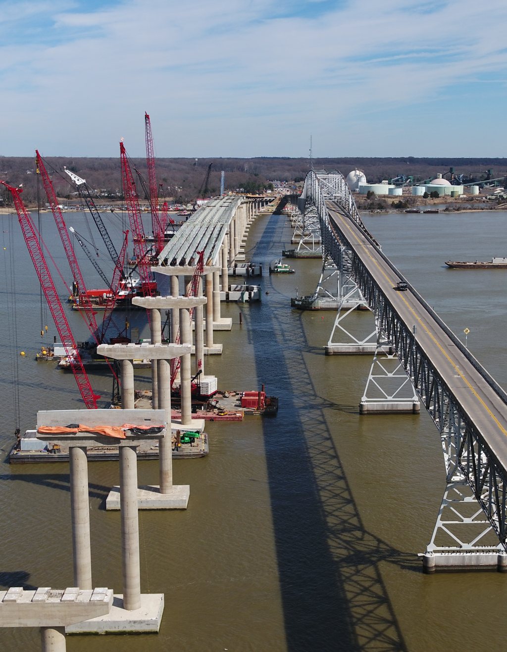 The height of the new bridge will accommodate tall vessels, and materials from the demolished older span will be used to create an artificial fish reef. In addition, the MDTA and Skanska-Corman-McLean are partnering with the Potomac River Fisheries Commission and Maryland Department of Natural Resources to fund oyster seeding in the lower Potomac River basin.